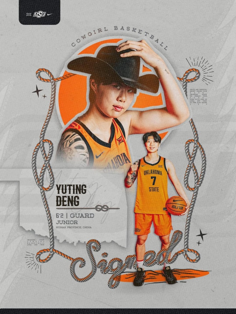 4月26日讯 中国球员邓雨婷社媒官宣,她将转校至BIG12联盟的俄克拉荷马州立大学。